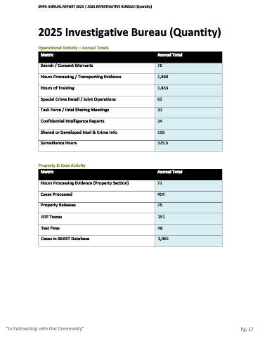 SHPD ANNUAL REPORT 2025 | 2025 INVESTIGATIVE BUREAU (Quantity)