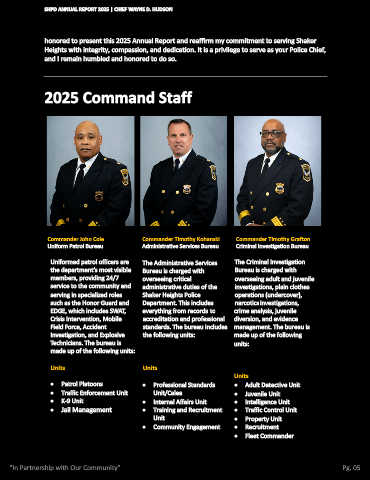 SHPD ANNUAL REPORT 2025 | CHIEF WAYNE D. HUDSON